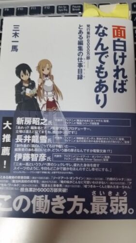 面白ければなんでもあり 発行累計6000万部――とある編集の仕事目録 三木一馬 (著) 電撃文庫の編集者で、『俺の妹がこんなに可愛いわけがない』『灼眼のシャナ』『アクセル・ワールド』など数々のヒット作の担当者である三木一馬氏による本。これが4重の意味…